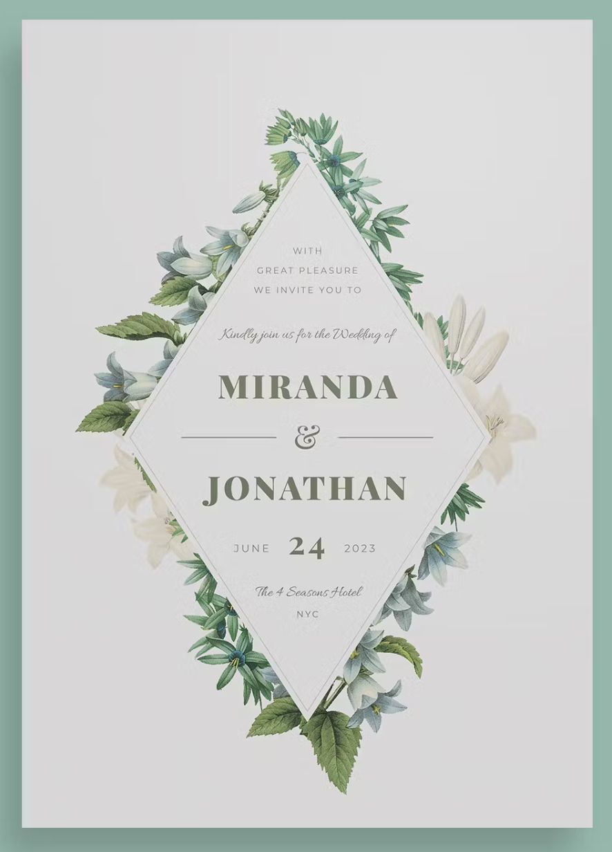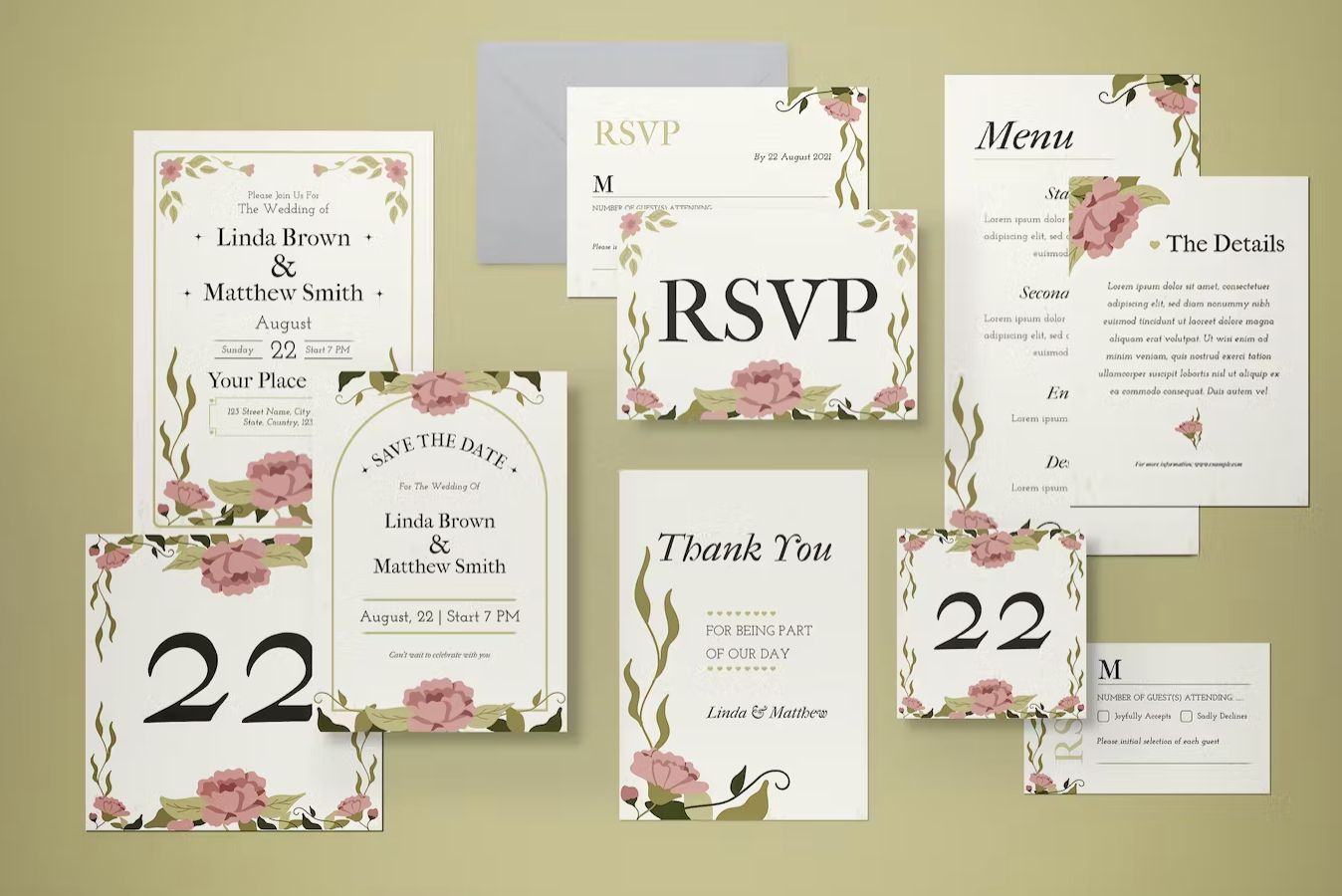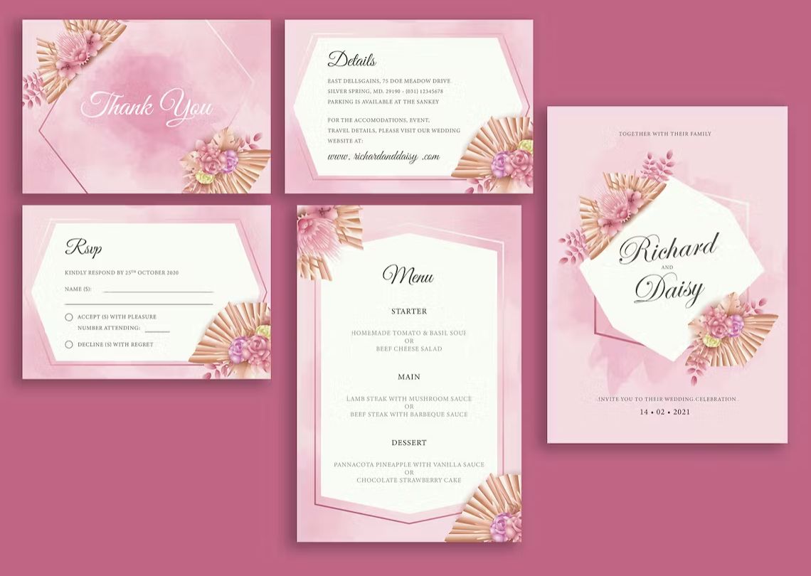 Completa tu Web con los diseños más exclusivos en invitaciones físicas, menús, destacados de mesas, tarjetas detalles, etc.